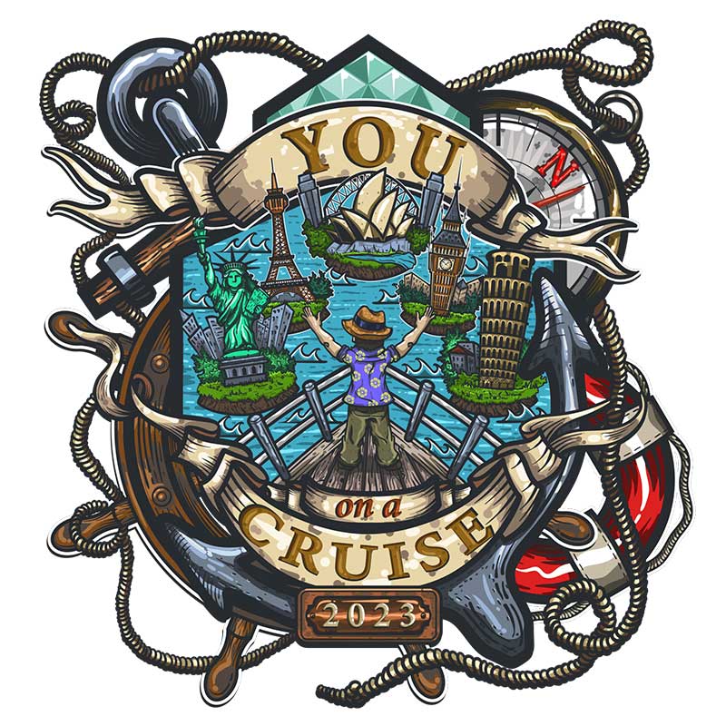 Wear your journey like a badge of honor with the You On A Cruise 2025 crest tee! This intricately illustrated design combines anchors, ship wheels, ropes, and iconic travel imagery into one epic emblem of ocean-going adventure.